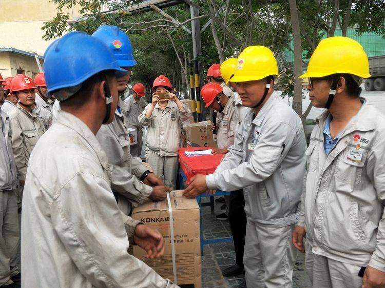 緊張的比賽結(jié)束了,集團公司王書記,片區(qū)安環(huán)主管葉總,資源再生公司李總分別為獲獎選手頒獎。此次比賽一等獎被動力裝置代表隊奪得,二等獎和三等獎分別為生料代表隊和原料裝置代表隊,其他參賽隊均獲得鼓勵獎。