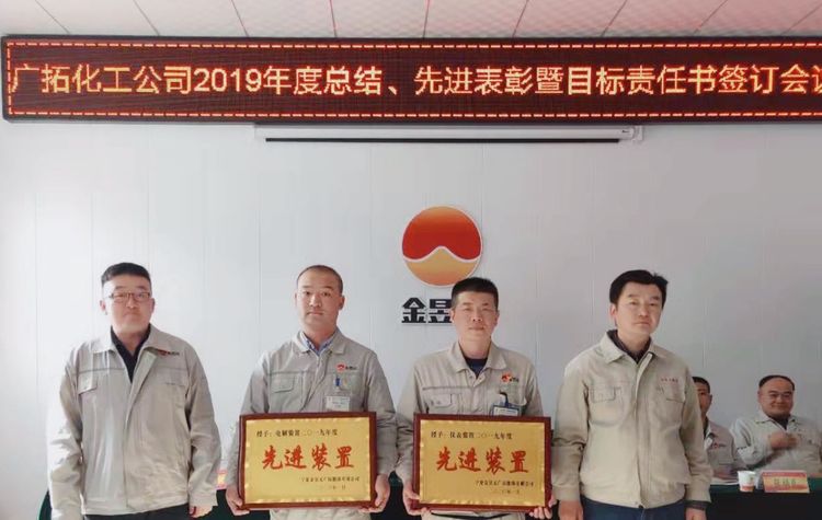 春節(jié)前期,廣拓能源化工公司組織召開2019年度工作總結(jié)、先進(jìn)表彰暨目標(biāo)責(zé)任書簽訂會議。本次會議由公司副總經(jīng)理盧志銀主持,化工公司總經(jīng)理、副總經(jīng)理、安全總監(jiān)、副總工程師出席,25名先進(jìn)集體、個人及70余名職工代表參加。