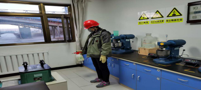 擦拭操作臺、門把手,進行衛(wèi)生消毒,工作的有條不紊。
