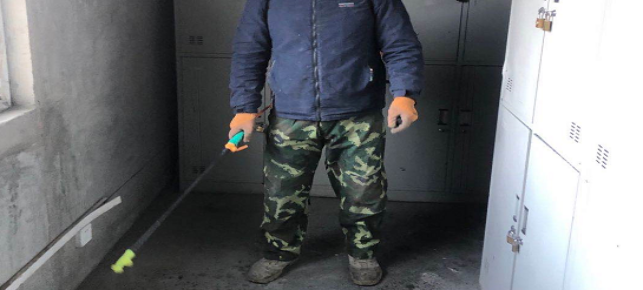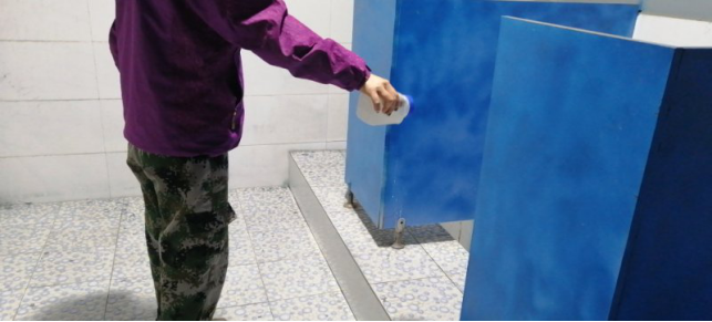對廠區(qū)衛(wèi)生間消毒。