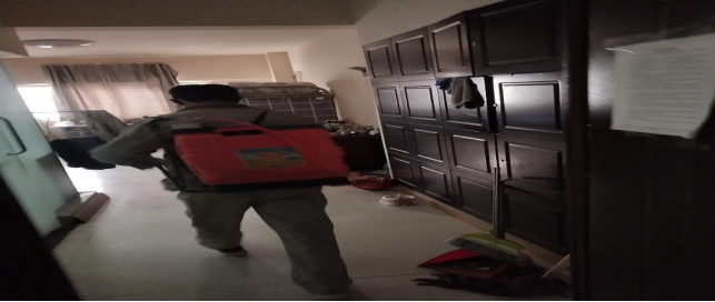 在園區(qū)南門,今日截止下午17時整,他們檢測、消毒、登記車輛70輛,人員71人,車輛正常,人員體溫均在正常范圍。