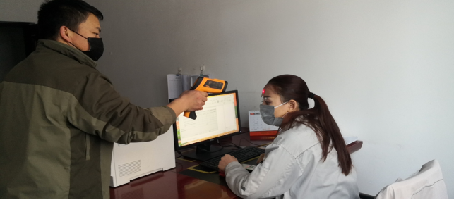 在園區(qū)南門,今日截止下午17時整,他們檢測、消毒、登記車輛78輛,人員100人,車輛正常,人員體溫均在正常范圍。
