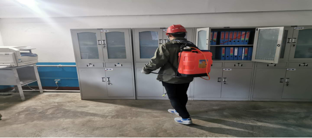在崗位辦公室消毒。
