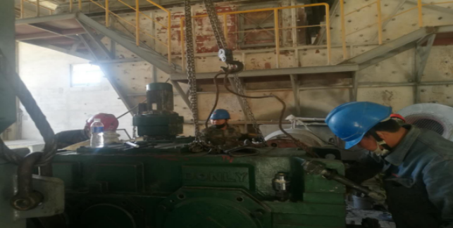 (4)烘干破減速機(jī)齒輪及軸承檢查,更換油封,聯(lián)軸器找正(未完成);