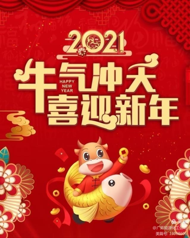 金牛奮蹄開錦繡,牛耕年豐又一春。值此農(nóng)歷辛丑牛年到來(lái)之際,廣拓化工公司總經(jīng)理賈存富攜公司領(lǐng)導(dǎo)班子向全體員工和給予化工公司鼎力支持的各級(jí)領(lǐng)導(dǎo)、朋友致以衷心的感謝和良好祝愿,祝大家在新的一年里牛氣沖天,身心健康,萬(wàn)事如意!