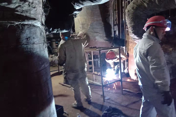 此時(shí)隆隆的吊車聲響徹在檢修現(xiàn)場(chǎng)。檢修作業(yè)最關(guān)鍵的時(shí)刻到來了,只見維修班長熟練用割槍切割著設(shè)備與框架的支點(diǎn),通紅的鐵水四處飛濺不時(shí)落在他的衣服上,留下黑色的小孔。他也顧不得這些,迅速完成了設(shè)備與框架的切割,其他人員也各司其職忙著斷口。隨著吊鉤的慢慢升起設(shè)備輕松與框架分離,由于空間狹小吊臂的活動(dòng)空間有限,吊裝作業(yè)顯得異常的緩慢,這對(duì)長時(shí)間在寒冷的室外作業(yè)人員是個(gè)極大的考驗(yàn),伴隨著指揮人員最后的口令下達(dá),舊的再沸器設(shè)備被緩緩地放到地上。此時(shí)已過中午時(shí)分,雖然大家早已饑腸轆轆,但是每個(gè)人的臉上洋溢著笑容,因?yàn)樗麄兩钌畹亩,只有?jīng)歷了艱辛的拼搏,才會(huì)收獲成功的喜悅。