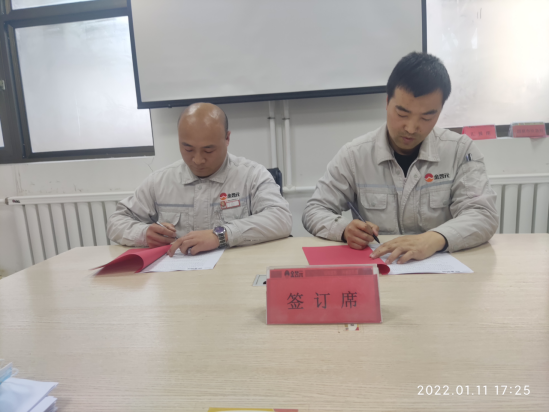 隨著會議議程的進行,公司總經理與副總經理、各單位負責人及副總經理與分管單位、職能主管科室與專業(yè)之間簽訂了“安全環(huán)保”與“經營管理”目標責任書。