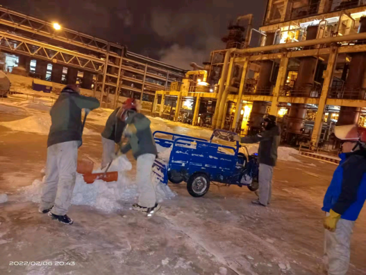 正月初五,固原迎來(lái)了2022年的第一場(chǎng)雪。堅(jiān)守夜班的化工橫一班接班后,調(diào)度就對(duì)橫一班員工強(qiáng)調(diào):“今天白天下了一天雪,晚上氣溫肯定會(huì)下降,現(xiàn)場(chǎng)巡檢時(shí)一定要注意防滑,上下樓梯抓好扶手,穩(wěn)走慢行。防凍防凝是巡檢重點(diǎn)內(nèi)容,大家要加大巡檢力度和頻次,尤其是要保證保溫伴管、排污閥、疏水閥等關(guān)鍵部位正常,操作人員要認(rèn)真監(jiān)控,及時(shí)觀察控制參數(shù)的變化情況,精準(zhǔn)調(diào)控,確保安全生產(chǎn)運(yùn)行”。一場(chǎng)大雪后,固原市銀裝素裹,人們?cè)诒M情地享受瑞雪樂趣。但在廠區(qū)內(nèi)“沙沙”聲、“咣咣”聲不絕于耳,當(dāng)班的班組長(zhǎng)及員工“以雪為令”,迅速行動(dòng),不畏嚴(yán)寒,揮舞著鐵鍬、掃帚、簸箕等一切能派上用處的除雪工具,你鏟我掃相互配合,全面徹底清理室外道路、巡檢通道、裝置現(xiàn)場(chǎng)等區(qū)域的積雪和凍冰,經(jīng)過(guò)數(shù)小時(shí)的奮戰(zhàn),現(xiàn)場(chǎng)干凈整潔,切實(shí)保證了裝置安穩(wěn)生產(chǎn)。