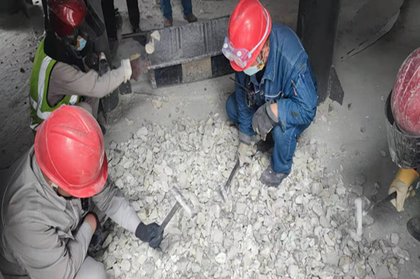 嚴(yán)格執(zhí)行白灰窯燒嘴看火及出灰探料管理機(jī)制;白灰窯崗位每班安排1-2個(gè)人,每小時(shí)使用鋼釬對(duì)四層燒嘴處沉料情況進(jìn)行確認(rèn),每次出灰必須檢查出灰機(jī)內(nèi)是否有結(jié)瘤。發(fā)現(xiàn)燒嘴處物料燒結(jié)不沉料時(shí),立即關(guān)小或關(guān)閉相對(duì)應(yīng)的煤氣閥門(mén),等待觀察沉料情況。發(fā)現(xiàn)出灰機(jī)有結(jié)瘤無(wú)法正常出料時(shí),立即組織人員清理結(jié)瘤,避免物料煅燒超時(shí)燒結(jié)。