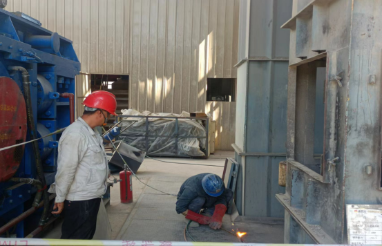 最繁忙、最艱苦的時段,從上午6:00分至下午17:20分,他們頂酷暑堅守在挖補窯磚、更換噴煤管的一線現(xiàn)場。烈日下,有的實施清理挖補窯磚、有的丈量計算、有的指揮進行吊裝、有的進行切割、焊接……