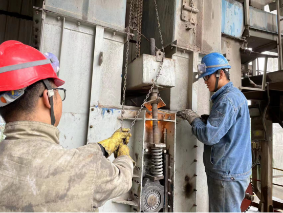 安裝技術(shù)要求高、安全風(fēng)險(xiǎn)大的項(xiàng)目,總經(jīng)理吳紅衛(wèi)同志牽頭組織召開碰頭會(huì),拿出技術(shù)方案,確保安裝精度、密封等滿足要求。特別是回轉(zhuǎn)窯大齒圈、烘干破旋風(fēng)筒補(bǔ)焊、窯頭電袋收塵器檢查、預(yù)熱器更換掛片、生料磨輥壓機(jī)堆焊等檢修項(xiàng)目,牽頭組織風(fēng)險(xiǎn)設(shè)別,確保安全受控。對(duì)于檢修周期長(zhǎng)及環(huán)境溫度要求高的檢修項(xiàng)目(工藝耐火磚及澆注料),合理安排施工時(shí)間,倒排施工節(jié)點(diǎn)時(shí)間,按計(jì)劃節(jié)點(diǎn)要求完成檢修任務(wù)。
