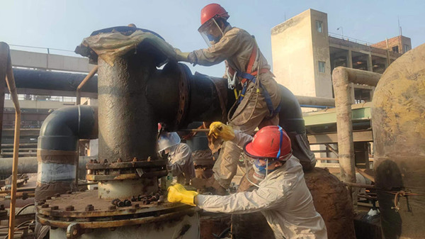 你瞧,正在冷凍檢修的馬寶林和趙久龍同志在一絲不茍焊接著管道,全然忘卻了身邊吹過呼呼的大風(fēng)。當(dāng)然,這只是氯乙烯裝置當(dāng)中很小的一部分縮影,當(dāng)寒風(fēng)刮過臉龐,那種寒冷真是無人能夠替代,為了早點完成任務(wù),沒有一個人懈怠,最終,他們克服了疲勞,戰(zhàn)勝了寒冷,默默地彰顯了氯乙烯人獨有的精神風(fēng)貌。