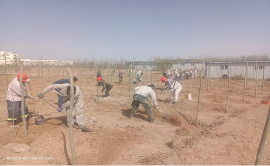 公司每年的春季都會制定本年度的環(huán)保節(jié)能目標,對廠區(qū)內(nèi)的綠化設施進行完善,加大綠化面積,組織一年一度的植樹活動。由于公司主要是生產(chǎn)建筑材料的,以普通硅酸鹽水泥和水泥原材料熟料為主的化工企業(yè),必不可少的廠區(qū)硬化占到了一定的面積,導致綠化覆蓋率較少。但是就是這樣的條件下,公司領導還是在有限的廠區(qū)綠化面積里盡可能的多種樹,改善員工的工作生產(chǎn)環(huán)境,保護環(huán)境衛(wèi)生。公司領導組織員工在原料堆廠的邊上再種一排楊樹,由于原料廠邊上常年受運輸車輛的碾壓,地質(zhì)堅硬,鐵鍬等普通挖土工具挖土困難,導致種樹進度緩慢。于是公司領導就協(xié)調(diào)安排了挖掘機進行挖樹坑,挖好了樹坑,就安排各裝置對于各自區(qū)域的樹苗進行移栽,經(jīng)過大家的齊心協(xié)力,樹苗都被小心翼翼的放到了新挖的樹坑里,你扶樹苗,我埋土,好不熱鬧,在大家共同努力下一排整齊的樹苗矗立在原料堆場的邊上。守護著這邊我們?yōu)橹畩^斗的熱土。
