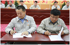 為了進(jìn)一步明確權(quán)責(zé),強(qiáng)化各級管理人員的責(zé)任意識,提高履職能力,會(huì)上,集團(tuán)公司各級主管領(lǐng)導(dǎo)簽訂了《2019年經(jīng)營管理目標(biāo)責(zé)任書》和《2019年安全環(huán)保目標(biāo)責(zé)任書》。