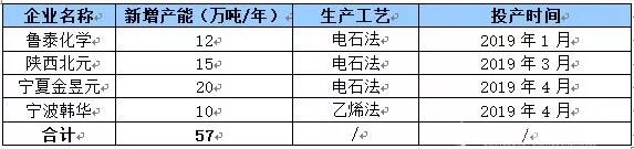 表1 2019年上半年新增PVC產(chǎn)能