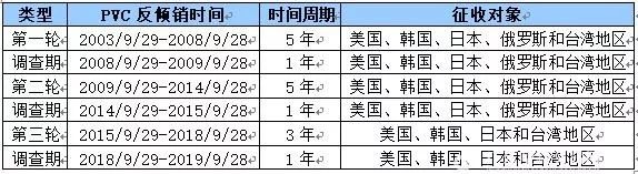 表3 國內(nèi)PVC歷次反傾銷政策