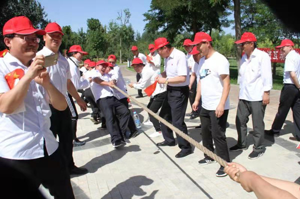 為豐富活動形式,增強(qiáng)黨員的交流互動,放松緊張的工作情緒,活動結(jié)合學(xué)黨章黨規(guī),組織開展了黨的知識答題接力賽和拔河比賽。拔河比賽中,三個支部選拔精兵強(qiáng)將,循環(huán)比賽。經(jīng)過激烈比拼,資源再生公司黨支部獲得第一名,公司黨委為優(yōu)勝隊(duì)頒發(fā)了紀(jì)念品。