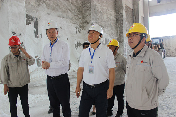 白鴻一行先后到興昊永勝鹽業(yè)公司鹽庫、鹽硝裝置、熱力裝置、企業(yè)文化展廳等地進(jìn)行實地調(diào)研,并在鹽庫合影留念。