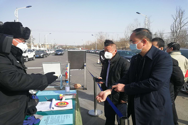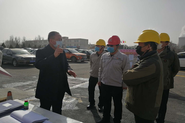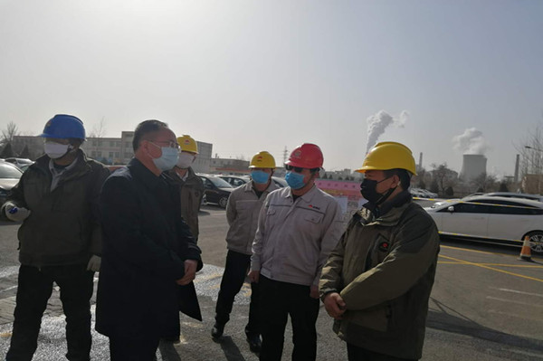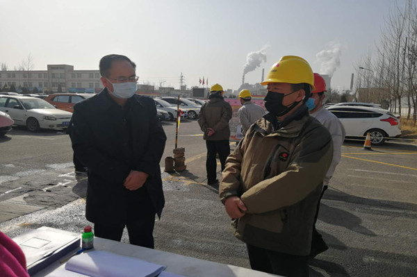 金永靈市長(zhǎng)按常規(guī)程序進(jìn)行測(cè)量體溫和登記信息,并翻閱出入大門(mén)人員信息登記臺(tái)賬。他詳細(xì)了解了集團(tuán)公司疫情防控工作,總裁葉森和黨委副書(shū)記兼工會(huì)主席王立軍逐一回答。