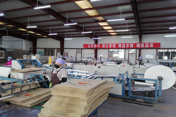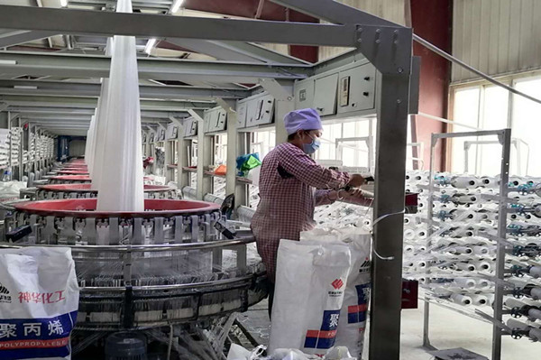 復工復產(chǎn)工后,華峰塑膠公司一邊加強疫情防控,一邊加強安全生產(chǎn)管理,組織員工加班加點提高包裝袋生產(chǎn)量。